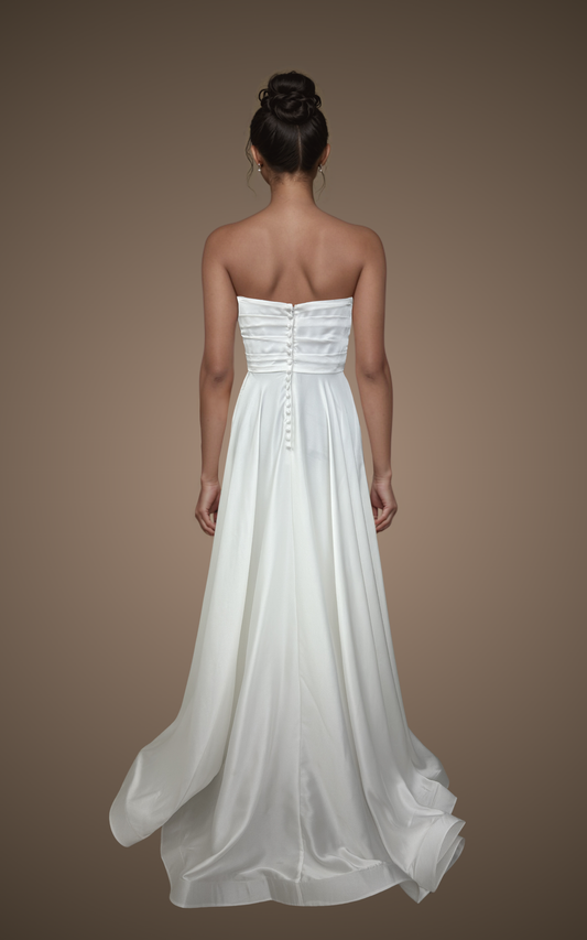 Our minimalist, chic designs are thoughtfully crafted to celebrate your natural beauty. We take pride in creating dresses that not only look stunning but feel effortless, allowing you to feel confident and radiant as you step into your forever.